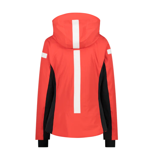 Modelo tope de gama de la colección de esquí 22/23 de CMP. Una chaqueta con un corte ceñido y ergonómico que, gracias al uso de tejido elástico en 4 direcciones, otorga la máxima libertad de movimiento. El confort se combina con las mejores tecnologías para apoyar al esquiador incluso en los días más fríos y exigentes: el acolchado es de PrimaLoft® Black Insulation - 80% PCR, para un aislamiento térmico eficaz con las cualidades añadidas de suavidad, compresibilidad y volumen. El acolchado ecológico de alto rendimiento se combina con el laminado térmico Clima Protect para una protección superior que no compromete la transpirabilidad (WP 20.000 - MPV 10.000). El tratamiento repelente al agua está libre de PFC. A las prestaciones de la chaqueta se suman varios detalles estructurales: polaina interior para la nieve, capucha interior y parte lumbar con forro de metal plateado para mantener la temperatura, cremallera frontal impermeable con solapa cortavientos y anti rozaduras, puños elásticos con abertura para los pulgares. La prenda tiene 2 bolsillos laterales impermeables con cremallera y un cómodo bolsillo para el forfait. La capucha es desmontable y se puede ajustar por delante y por detrás. Un modelo completo caracterizado por un diseño esencial y atemporal, que juega con elementos geométricos en colores contrastados hábilmente colocados en los brazos y el pecho.