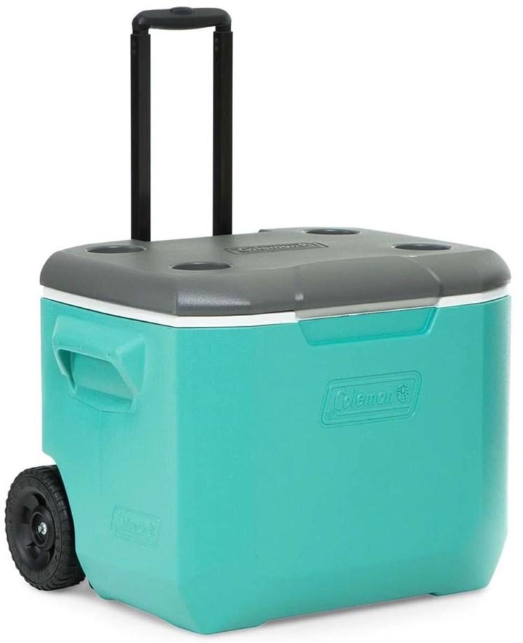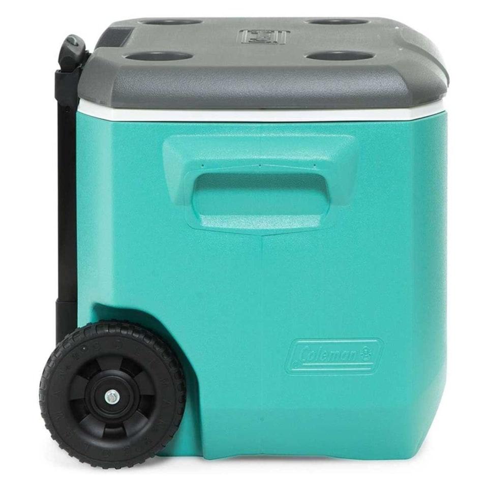Disfruta de bebidas frescas en cualquier lugar, llévalas dentro de la hielera Coleman 3000005940, es súper fácil transportarla por las dos ruedas que incluye y la asa retráctil.