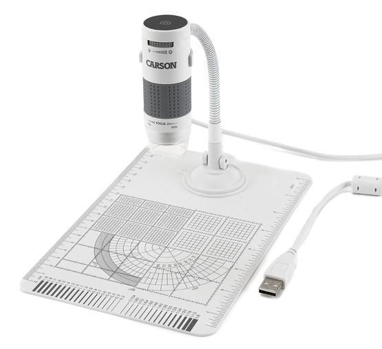 El microscopio incluye un soporte flexible de 20 cm que puede fijarse a la bandeja incluida o a cualquier superficie lisa, ofreciendo estabilidad y libertad de movimiento. Funciona mediante conexión USB y no requiere baterías, lo que garantiza un uso continuo sin interrupciones. Es compatible con sistemas operativos Windows y Mac OS.