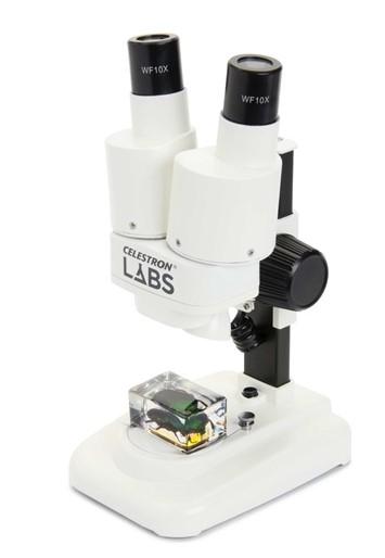 El Celestron Labs S20 es un microscopio estereo diseñado para quienes buscan iniciarse en la observación de baja potencia con una excelente relación entre calidad y precio. Su óptica de 20x permite examinar muestras en tres dimensiones, lo que lo hace ideal para hojas, insectos, minerales, rocas, placas electrónicas y otros objetos con relieve.