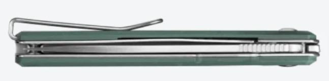 • Mango de G10 en verde pino: Ligero, ergonómico y con textura antideslizante, ideal para un agarre firme.
