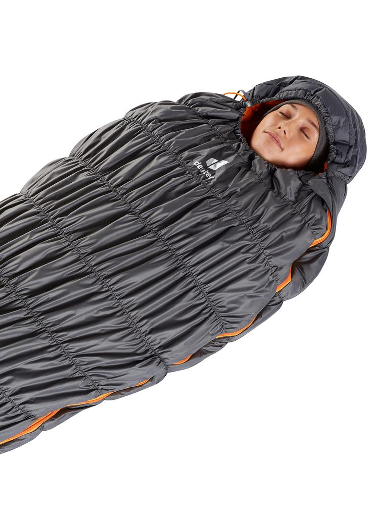 Nuestro saco de dormir de fibra sintética es la solución para senderistas que desean comodidad y una relación óptima entre calidez y peso. Las cámaras con costuras elásticas mantienen el saco de dormir cerca del cuerpo, de modo que ofrece mucha más libertad de movimiento gracias a su 25 % de capacidad de expansión a lo ancho. Además, se calienta rápidamente, ya que el usuario solo tiene que calentar una cantidad mínima de aire. El relleno de 360 grados garantiza la libertad de movimiento al dormir sin miedo a pasar frío. La parte superior contorneada rodea perfectamente la cabeza y la zona de los pies puntiaguda se ajusta de manera óptima a la forma de los pies. Sus nuevos materiales garantizan un entorno para dormir agradable y prácticamente sin crujidos.